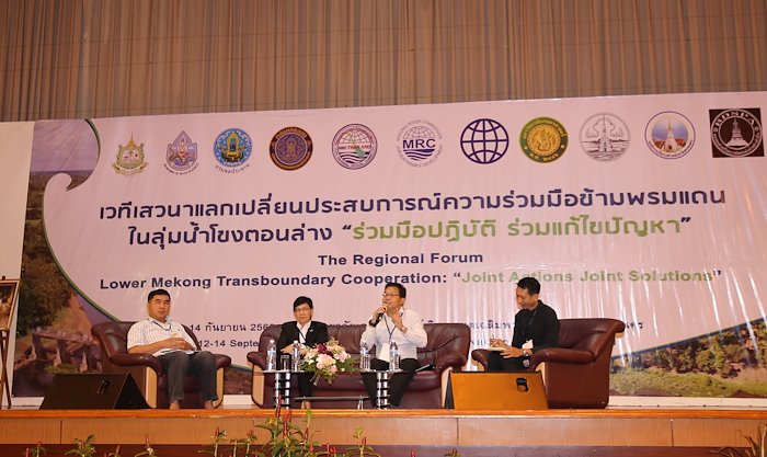 At a regional forum “Lower Mekong Transboundary Cooperation: Joint Actions Joint Solutions” in Sakon Nakhon, the participants learned how those four countries cooperated to improve fisheries, delta, lakes and wetlands management along the borders, and reflected how they would possibly adapt those lessons into their own communities.